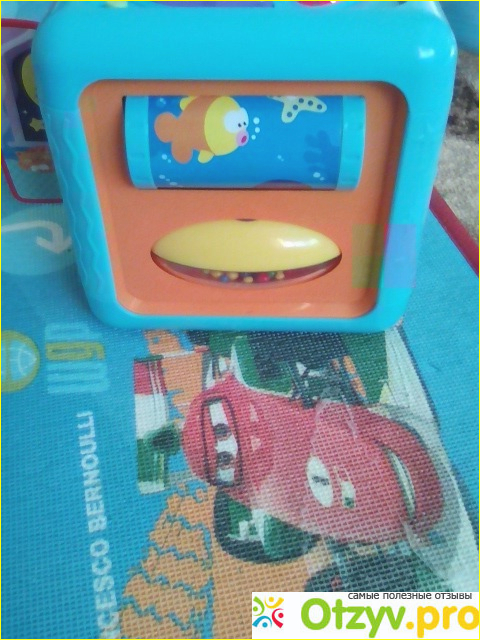 Как видно из картинок, данный игровой центр сделан в виде куба и имеет несколько частей, развивающих основные навыки ребенка. Есть пластмассовая книжка, которую можно листать.