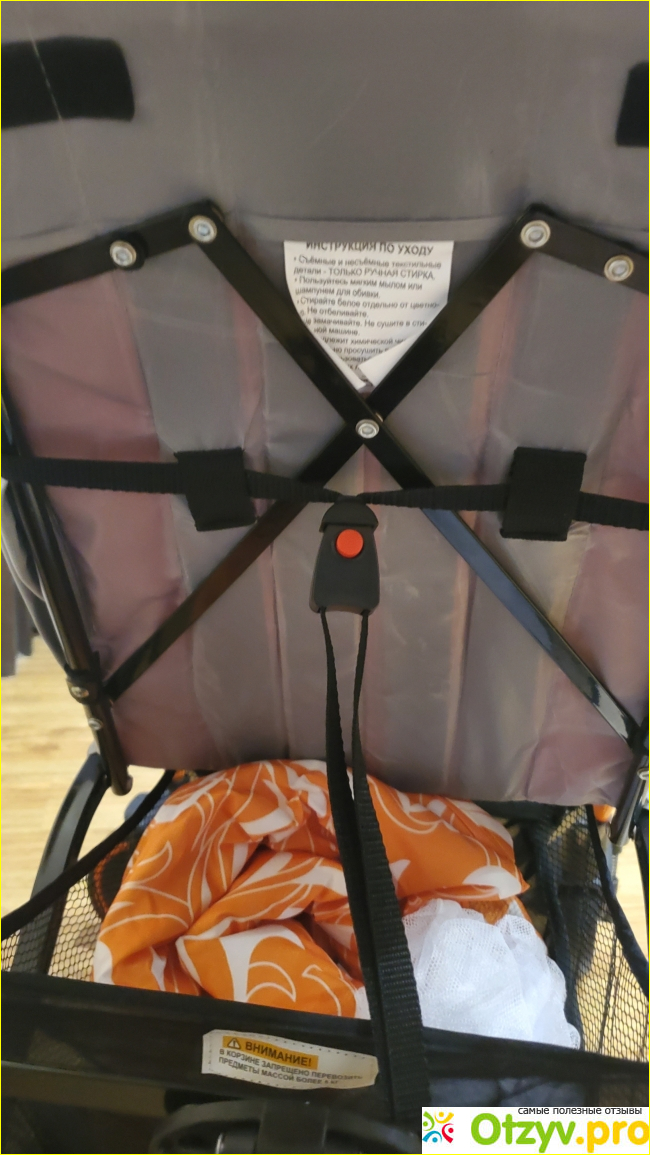 Кроме этого коляска снабжена 5-ти точечной системой ремней безопасности, имеется багажная корзина и смотровое окно на капюшоне, есть регулируемая подложка.