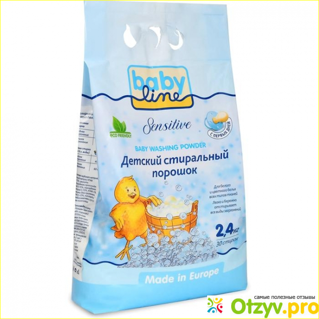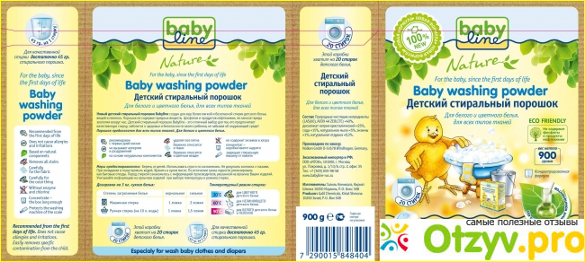 В отличии от остальных порошков babyline создан на основе натурального мыла - моющего средства, которое не повредит здоровью крохи.