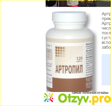 Когда был поставлен вопрос как будем лечиться и какие методы использовать, бабушка решила что для начала попробует попринимать таблетки биологически активные добавки. По совету своей подружки, она решила приобрести через интернет БАД от болей в суставал Артропил. Бабушка у меня соверменная и решила лечиться используя современные методы лечения. Народная медицина так сказать ушла на дальний план. И так, сейчас я более подробно расскажу вам о данном препарате.