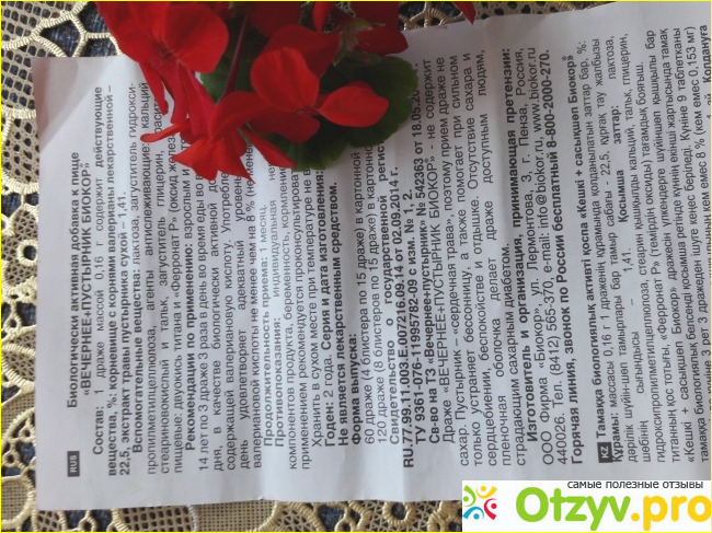 Основные компоненты: экстракт травы пустырника и корневище с корнями валерианы.