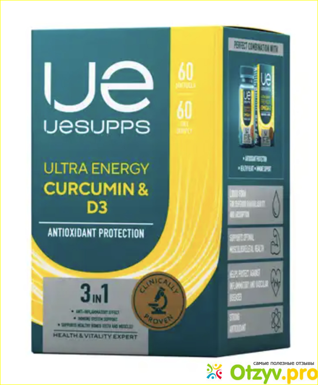 Нашла на просторах интернета добавку под названием “Куркумин и витамин Д3”. Бренд UESUPPS, может многие не знают, но это такие зеленоватые баночки с красивым дизайном. И они приезжают из ОАЭ, есть все сертификаты качества, так что добавка хорошая. Я ее сама попробовала, 60 капсул как раз подходят на курс приема. Курс спокойно прошел, какого-то дискомфорта не было. Кроме того, что куркумин выводит "плохой" холестерин из орагнизма, витамин Д помогает поддерживать костную систему и в целом помогает с иммунитетом. Я заметила что более крепкая в плане здоровья стала, меньше простываю. Но нужно конечно подождать, пока добавка начнет действовать, на раз-два сразу же все резко не пройдет, такого не бывает.