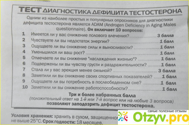 В упаковке есть тест на листочке, пройдя его можно понять есть ли проблемы с гормонами у мужчины. Можно тогда без анализов сказать есть ли проблемы с гормонами у мужчины или нет.