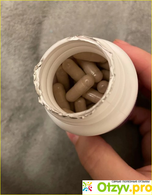 Средство приходит в стандартной баночке крупного размера. Баночка изготовлена из плотного пластика с завинчивающейся крышкой. Верхняя часть запаяна в пластик. Под крышечкой скрывается защитная мембрана из тонкой фольги. Она открывается не очень удобно, поэтому приходится воспользоваться ножницами или ножиком. Внутри после вскрытия можно увидеть стандартные капсулы небольшого размера. У них немного непривычный серый цвет.