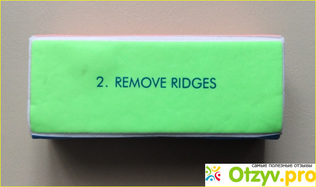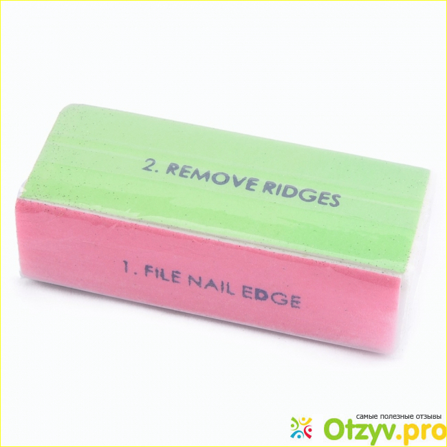 Вторая сторона позитивного зеленого цвета. Ее сделали для того, чтобы она после подпиливания зашлифовывала ноготь, а именно убирала неровности. Но по сути эта сторона не делает ничего. Нет совсем никакого воздействия на ногтевую пластину.