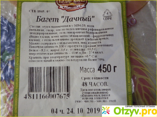 Сегодня отзыв о багете, который изготовлен ОАО "Борисовхлебпром"