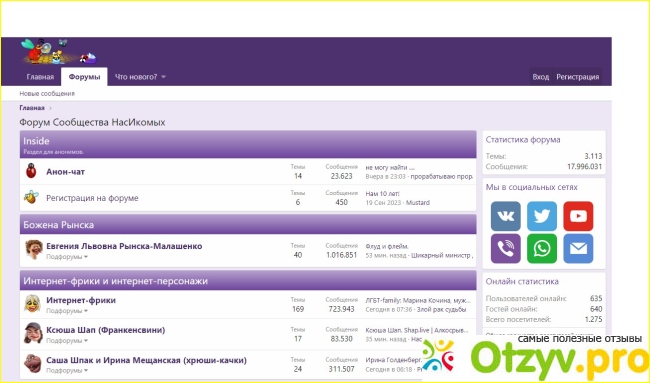 Этим же отличается и форум сайта, где обсуждают различные блоггеров, звездочек инстаграма, различных интерне-мошенников и аферистов, разбирают по косточкам звезд, где происходят политические разборки на низком примитивном уровне и так далее.