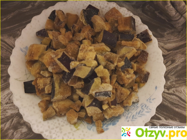 Вид у баклажанов крайне неприглядный. Я обратила на это внимание сразу же, как только открыла пакет. Тех самых аккуратных кусочков, как на пакете, я не увидела. В упаковке были вот такие разные по размеру ломтики, цвет которых отбил у меня желание приступить к готовке. Темно-коричневые в пятнах непонятного происхождения овощи вряд ли пригодны к готовке и безопасны. Некоторые из них были во льду, какие-то кусочки разложились на мелкие волокна в процессе заморозки. Возможно, продукт был переморожен несколько раз. Я не рекомендую эти баклажаны никому. И сама покупать их, естественно, больше не стану. Есть более качественные продукты от хорошо зарекомендовавших себя производителей. Называть марки не буду, чтобы не подумали, что это реклама.
