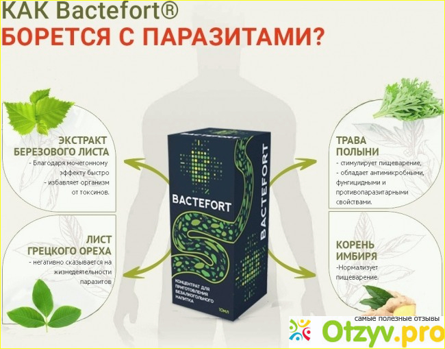 Так как я мама, соответственно я общаюсь и с другими мамами. И как-то на детской площадке мы заговорили про паразитов, про препараты и одна мама рассказала, что она увидела этот чудо-препарат и решила его заказать, тем более там была акция. Ей очень понравилось, что состав у этого препарата включал в себя экстракты различных трав, и только эти травы в комплексе могут наилучшим образом бороться с паразитами. А еще Бактефорт улучшает работу кишечника и нормализует ее.