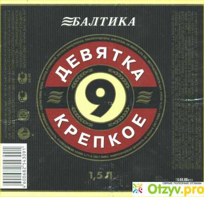 Это пиво, о котором ходят легенды и его каждый в жизни должен попробовать! Балтика 9 не для гурманов, а для тех, кому нужно быстро и недорого напиться и плевать, что будет утром. Удовольствия от употребления этого пива никакого. Если судить по критериям пивоварения, это уже не пиво, а пойло.