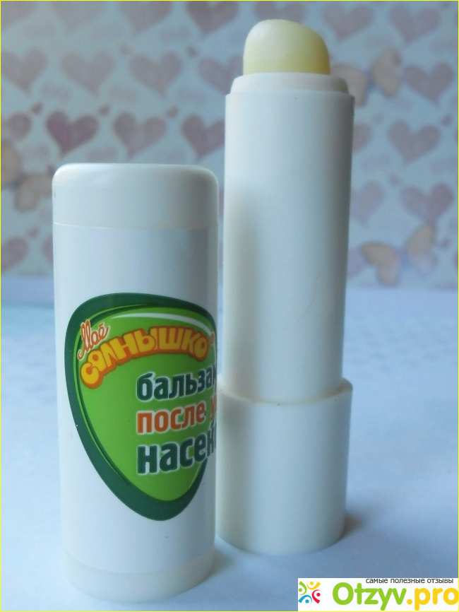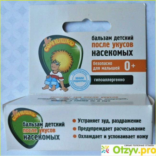 Укусы нестерпимо чесались, в результате маленькие точки в месте укусов превращались в большие красные пятна, с которыми просто невозможно было выйти из дома, не нарвавшись на вопрос: "А что это с лицом? Это не заразно?" Как назло, дома не оказалось ни одного специфического средства, уменьшающего зуд от укусов. Мне пришлось идти в аптеку, но и там не нашлось ничего подходящего, поскольку был не сезон для разного рода насекомых. Мне посоветовали какие-то народные средства, с этим я и отправилась домой, а по дороге зашла в магазин "Рубль Бум" за каким-нибудь инсектицидным препаратом - мошек выводить как-то надо было. И вот там, на кассе, о спасение (!), я увидела то, что искала - бальзам детский против укуса насекомых известного детского косметического бренда "Мое солнышко". Разумеется, я его купила, даже несмотря на то, что этот продукт предназначен для малышей, включая только что родившихся младенцев. А моя дочка уже давно выросла из пеленок.