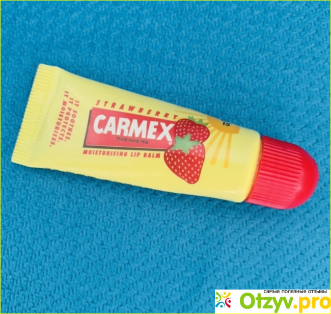 Есть разные ароматизаторы или вкусы. Я пока что попробовала "стандартный без вкуса" и вот этот клубничный. По сути это просто отдушка, на вкус лучше не пробовать. Хотя это отчасти неизбежно, тк. на губы же наносим это средство. Carmex представляет из себя просто что-то среднее между бальзамом и мазью. На холоде замерзает и превращается в более вязкую штуку. На жаре наоборот тает. На мой взгляд формат удобный, этот тюбик небольшого размера, его удобно с собой брать. На губах смотрится очень красиво, хотя казалось бы, просто бальзам. Но он выравнивает поверхность, так скажем и губы смотрятся более пухлыми и слегка сияющими. В этом средстве нет блесток, просто финиш у него глянцевый. Подходит и для завершающего штриха в макияже, в общем, мне очень нравится. Губы хорошо увлажняет, защищает от ветра и помогает ранкам заживляться. Они не говорят о каких-либо лечебных свойствах, я имею в виду производители. Думаю, такой эффект достигается за счет того, что Carmex образует как бы пленочку на губах, и нет контакта с внешней средой, наверное благодаря этому получается такой результат. Единственный как бы минус - если не пользоваться этим средством, то губы будут сохнуть. То есть он не обеспечивает очень продолжительное действие. Во всем остальном очень устраивает, расход у него очень экономичный. Такого тюбика хватает на год примерно при постоянном использовании. Так что эти 350 рублей - просто копейки)