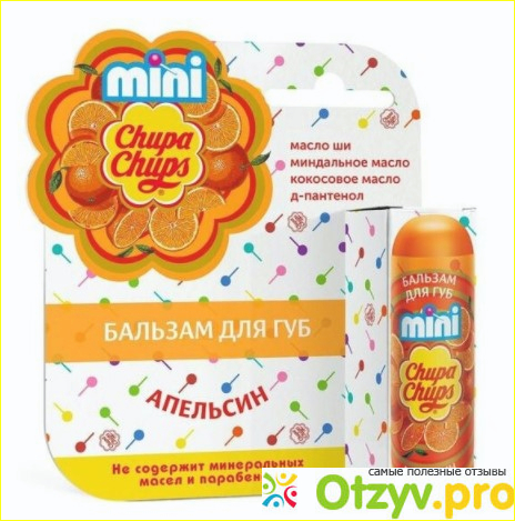 Доче сразу приглянулся такой необычный бальзам от Chupa Chups, мне и самой, признаться понравилась упаковка. Кроме того, на упаковке заявлено, что в состав продукта входит четыре масла: ши, миндальное, кокосовое, и д-пантенол.
