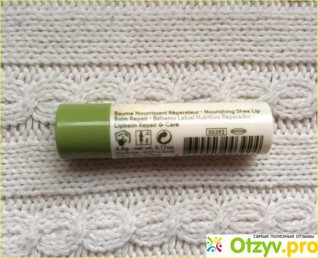 На упаковке есть информация, которую ставил производитель для потребителя: состав, который был представлен на наклейке, вес, сроки годности, правила использования, ожидаемый эффект, информация о самом производителе. У производителя есть несколько вариантов подобных гигиенических бальзамов, я попробовала уже несколько, но в данном случае это бальзам с карите. Он лает хорошие увлажняющие свойства, он ухаживает за кожей губ, при этом помогает быстрее заживлять обветренные места. Орех довольно жирный, но слишком на бальзаме это не выделяется.