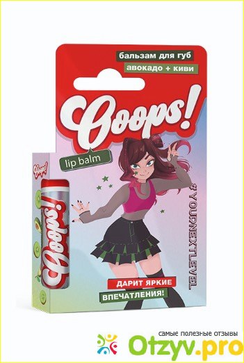 В том году попробовала бальзамы Ooops! Очень понравились, самым любимым стал с Авокадо и Киви. Бальзам прекрасно подходит как для лета, так и для зимы. Надежно защищает и от ультрафиолета, и от холодов. Например, от перепада температур, кондиционеров, солнца и пр. у меня часто сохнут и шелушатся губы, иногда даже трескаются. Бальзам быстро восстанавливает нежную кожу, устраняет сухость, залечивает ранки и глубоко питает. С ним мои губки вновь становятся эластичными, мягкими, красивыми и здоровыми. Брала бальзам с собой в отпуск, испытание палящим солнцем, соленой водой и ветром он тоже достойно выдержал. Текстура нежная, тает на губах, не оставляет неприятной пленки и жирности. Имеет сладкий вкус и аппетитно пахнет. Качество на высоте, в составе натуральные ингредиенты, нет SLS и парабенов. В общем, от бальзама я в полном восторге!