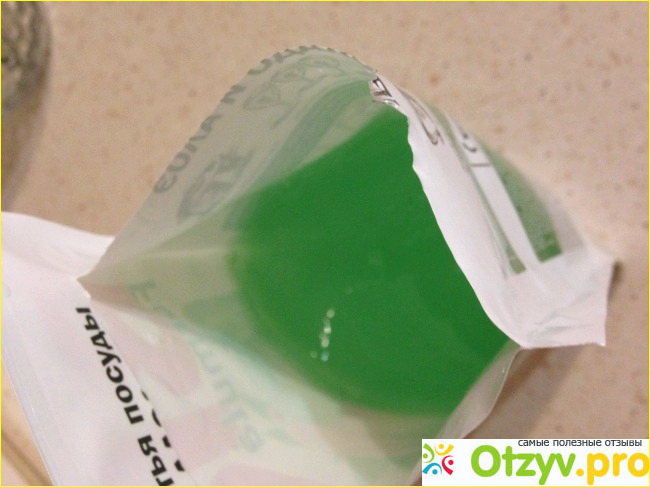 При вскрытия пакета уловила весьма приятный запах, очень свежий и похожий на натуральный аромат. используя это средство я ни разу не уловила химической нотки, хотя я очень восприимчива к посторонним запахам. Бальзам для мытья посуды и выглядит свежо и приятно.