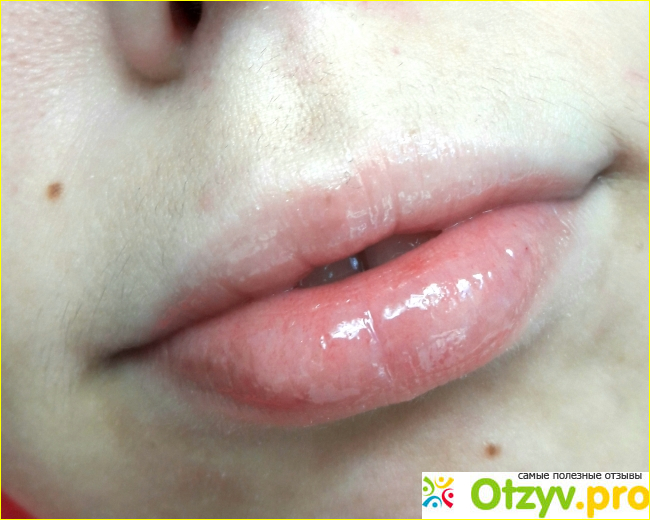 2. А вот кожу на губах разглаживает идеально просто, почти все складочки исчезают и они превращаются в зеркальную поверхность. Мне очень нравится этот эффект.