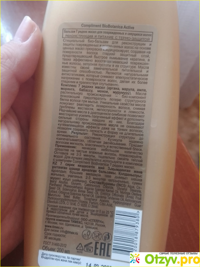 С обратной стороны упаковки указана вся основная информация об этом бальзаме.