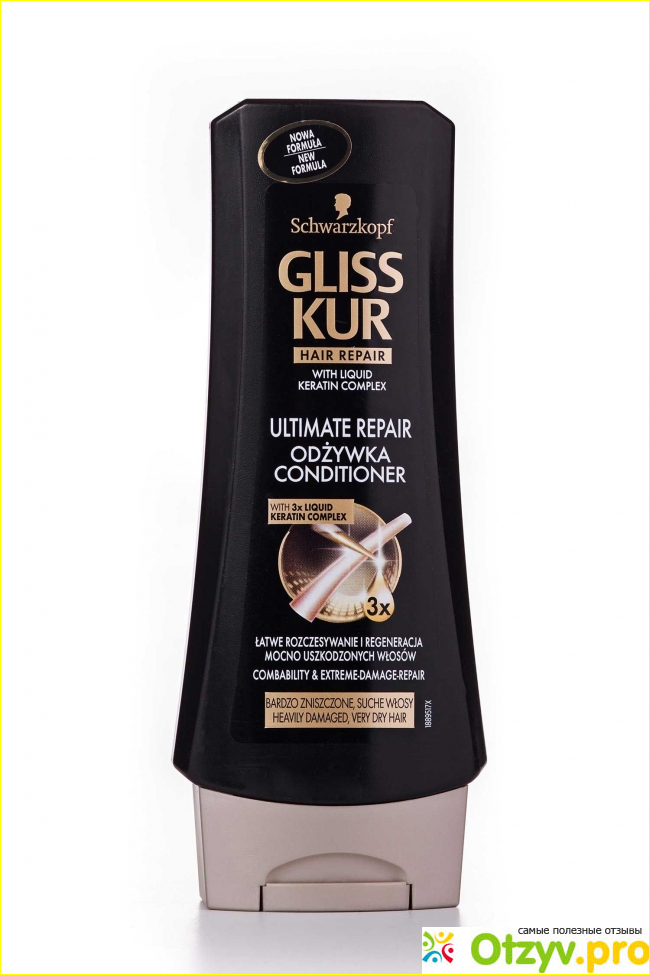 Производитель обещает, что инновационная формула бальзама с тройной концентрацией кератинов позволит в кратчайшие сроки восстановить структуру моих волос. В составе бальзама должны содержаться кератины, которые идентичны натуральному кератину волос, причем - в жидкой форме, и они будут заполнять поврежденные участки волос. Благодаря всему этому волшебству волосы станут очень гладкими и будут расчесываться намного легче, чем обычно.