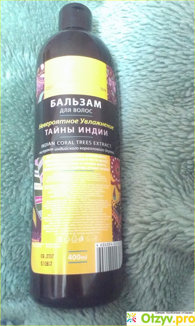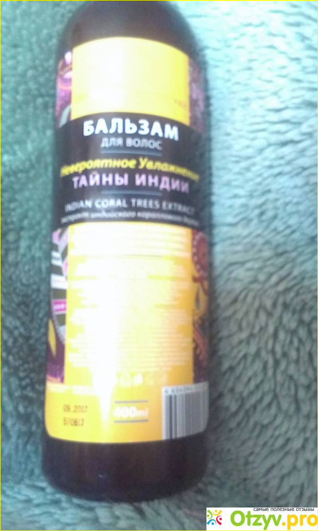 Большая бутыль черного цвета. Объём 400 мл. Изготовлено по Гост. Первый же недостаток я заметила после двух применений бальзама: отвратительное качество пластика, бутылка вся изогнулась. Дальше ещё интереснее: читаем внимательно этикетку: Бальзам заявлен, как увлажняющий, а вот экстракт индийского кораллового дерева - активный компонент- дарит нашим волосам укрепление и рост. Возникает вопрос на что же всё таки направлено действие бальзама? Непонятно.