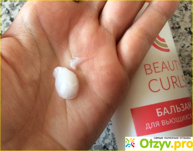 Бальзам очень густой, но удобен при нанесении на волосы. Белого цвета и если хорошо присмотреться можно разглядеть жемчужный оттенок.