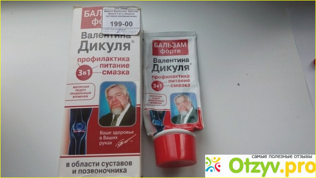 Сам бальзам упакован симпатично, то есть вся туба расписана составом бальзама, а так же на самом главном месте помещена фотография самого Валентина Дикуля.