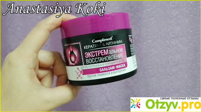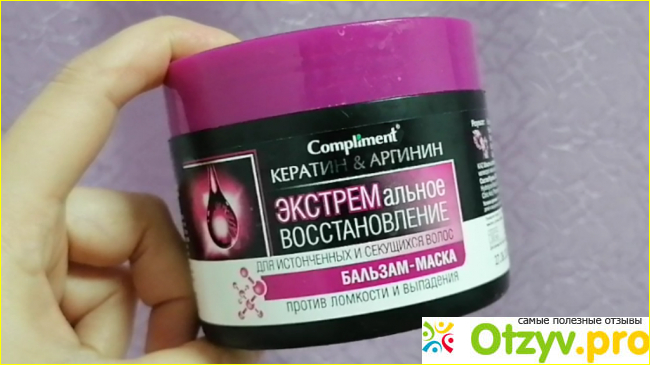 Бальзам-маска для волос Compliment "Кератин и аргинин экстремальное восстановление" появилась в моем уходе за волосами в летний период по советам знакомых девчонок. Средство представлено объеме 300 мл. в удобной круглой банке с откручивающейся крышкой.