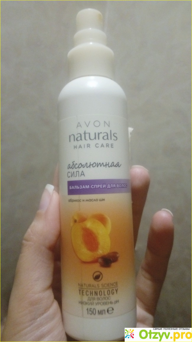 Средства для волос я использую разнообразные, и от торговой марки Avon в том числе. У этого производителя есть неплохой бальзам-спрей для волос из серии Avon Naturals "Абрикос и масло ши", "Абсолютная сила"". Спрей из ряда бюджетных, его стоимость что-то около 35 грн, вроде это была акционная цена.