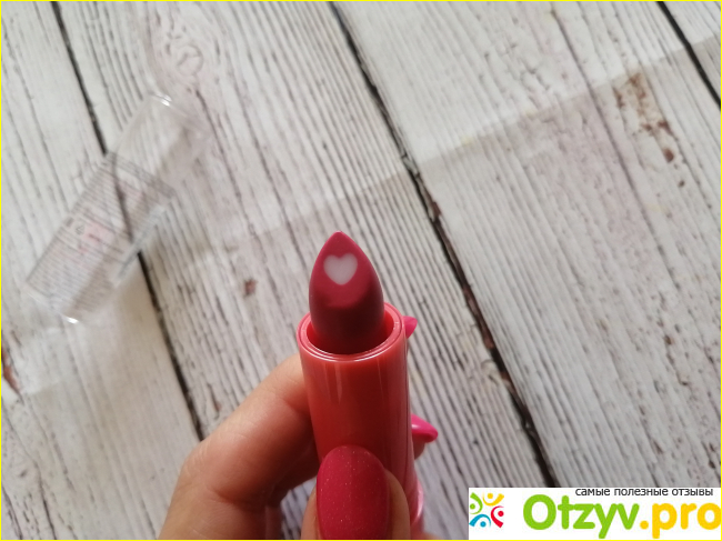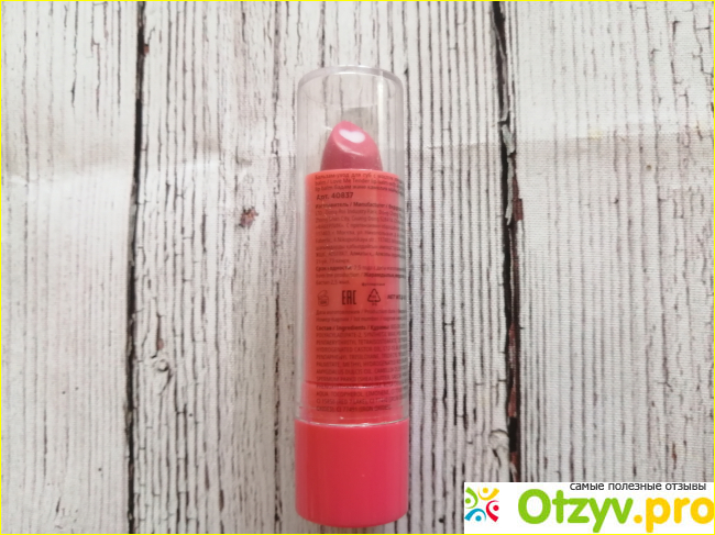 А розовая часть содержит масла ши и шиповника, которые которые также положительно влияют на кжу губ, защищая, увлажняя ее и защищая от появления трещинок на коже губ.