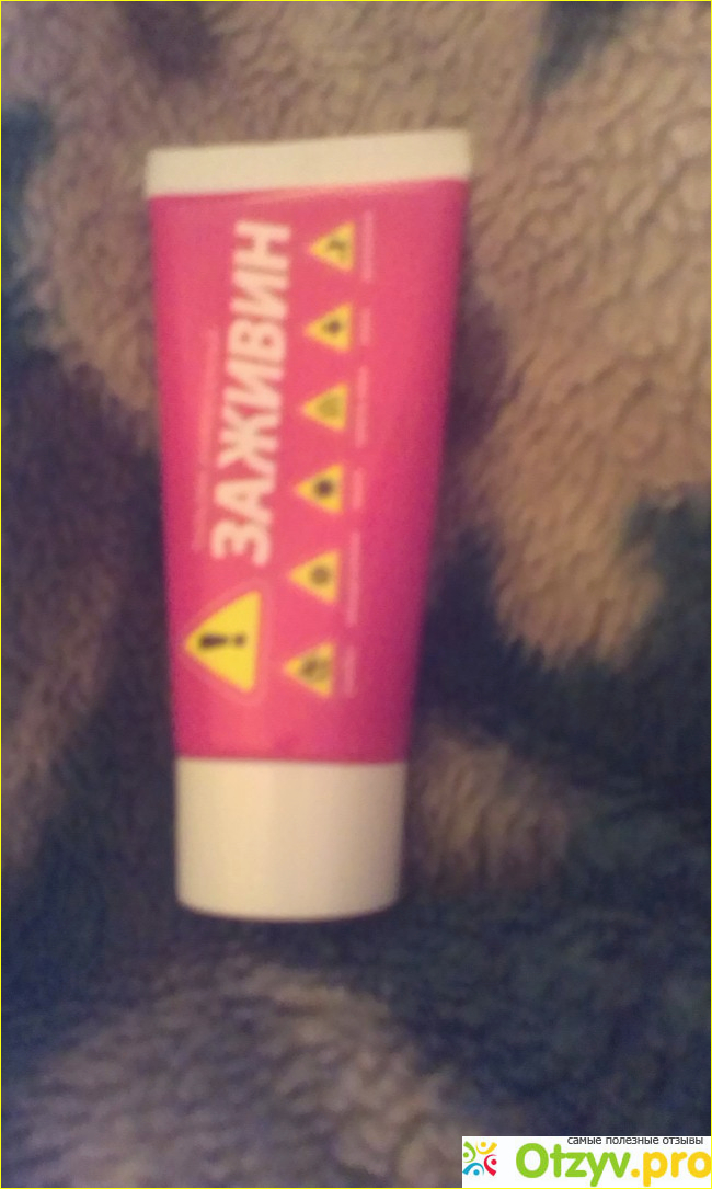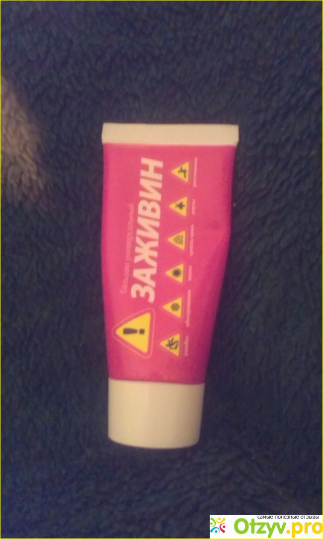 Тюбик с бальзамом небольшой по размеру, ярко красного цвета с крупной надписью белого цвета с названием " Заживин", так же значками обозначено для чего предназначен бальзам. Объём всего лишь, 50 грамм. Изготовлено по Гост.