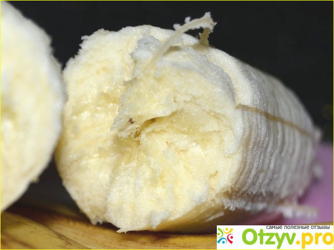 Несмотря на тёмные пятна на корочке мякоть белоснежная и чистая, без дефектов. Прожилок и корочек на мякоти при очистке не остаётся. Разрезается или откусывается мягко со средней жёсткостью, иными словами кусай его приятно, не разваливается и не мнётся. Вкус сладкий, но не приторный. Хранится хорошо. Несколько дней пролежал в холодильнике и совершенно не потерял вид и цвет. Можно сказать, что это идеальный банан.