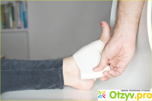 Продолжайте оборачивать повязку вокруг стопы, к лодыжке, перекрывая обертку на 1/4 дюйма с каждым вращением. Компресс должен быть аккуратным, но не слишком тугим. Если пальцы меняют цвет, в таком случае разворачивают повязку и начинают все сначала.