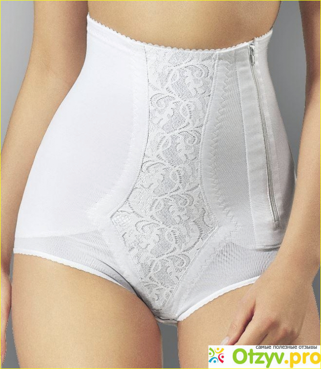 Он также оснащён разноуровневыми застёжками и выполнен из плотной эластичной ткани. Трусики хорошо фиксируют живот и под одеждой они почти неразличимы. Но у такого вида есть серьезный недостаток: их необходимо стирать ежедневно.