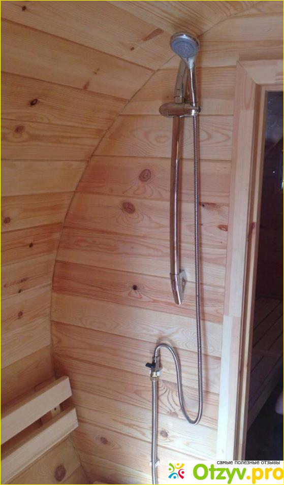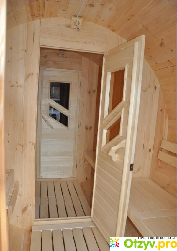 В продаже есть мобильная баня – бочка, длина которой не превышает 2 м. По сути это одно сплошное помещение – парилка. В такой конструкции крупный недостаток – отсутствие предбанника (комнаты для переодевания). Нужно переодеваться дома и бежать в баню, обернувшись полотенцем. Практически отсутствует моечное отделение. Иногда такую деревянную купель устанавливают неподалеку от бассейна, это возможно на дачном участке.