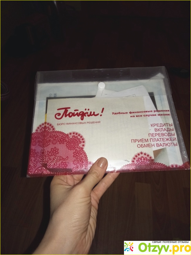 Банк "Пойдем" имеет очень приятную обстановку, пусть и небольшое отделение, но все таки пока ждешь своей очереди, а там - это обычно длится не более 5 минут. Можно посидеть на комфортном диване с подушками, потом при оформлении вклада, девушка быстро работает и предлагает все возможные предложения от тех, что есть у них, это мен тоже зацепило у них в банке пойдем. А потом когда я сделала вот такой крупный вклад на такую сумму, то тут же у них стоит кассовая зона и кассир, при тебе пересчитывает всю сумму и распечатывает чек. При выдаче документов на вклад, работники банка выдают пакет документов, которые складывают в отдельную папку в стиле банка "Пойдем", это оказалось так удобно и сегодня эта папка у меня сохранилась, а когда в ней я хранила все бумаги по вкладу.