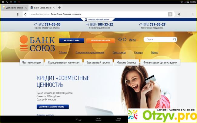 Здравствуйте. В своём отзыве я напишу моё мнение и про сам банк "Банк союз".