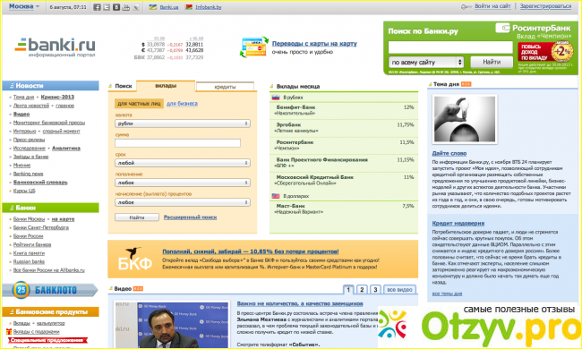 На банках ру есть конечно и минусы, это излишняя реклама, которая может вылезти и сбить с толку, но на этом сайт видимо неплохо зарабатывает.
