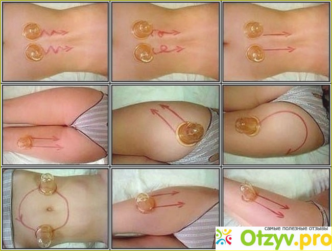 Начните водить баночку по своим проблемным местам по определенной траектории: вперед-назад; зигзагами; волнообразно восьмерками; петельками (смотрите картинку ниже!)