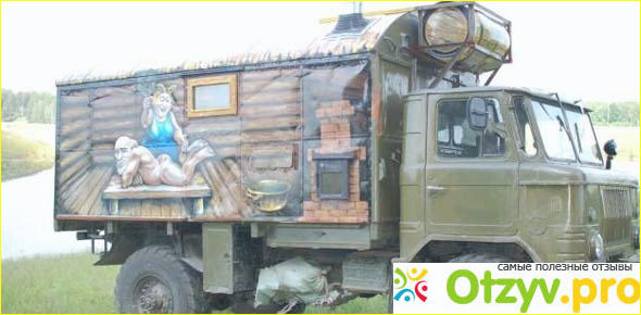 Минус в том, что ГАЗ 66 вмещает в себя только 3 человека ( я имею ввиду после переоборудования в баню ), не слишком уж это много.