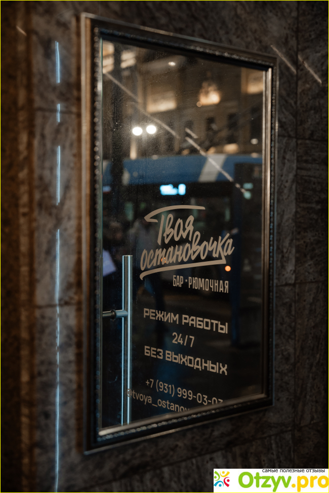 Заглянули в такой бар, работает он круглосуточно. Я бы сделала чуть заметнее вывеску.