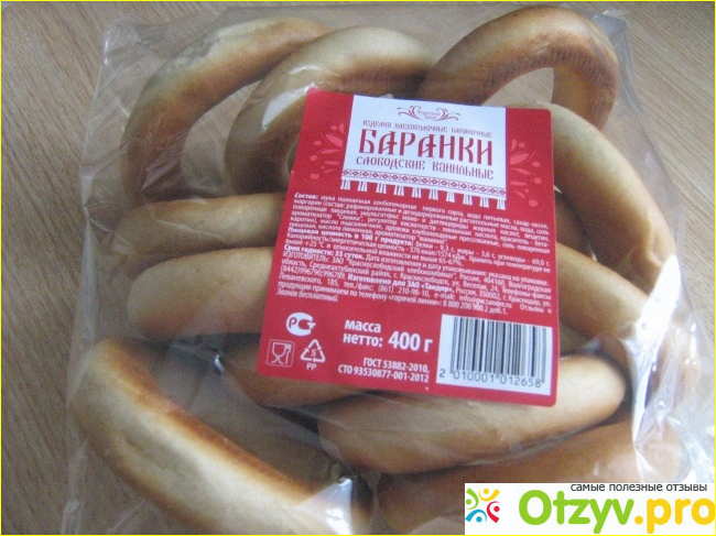 Изготавливаются баранки по заказу ЗАО "Тандер". Срок годности баранок 35 суток со дня их изготовления. Нам с мужем нравятся баранки, которые я стараюсь покупать свежими и мягкими, а поэтому всегда смотрю срок хранения. На вкус они постоянно вкусные, ароматные, с запахом ванили, который нам очень нравится. С данными баранками мы постоянно пьем чай, молоко, кисель и кофе.
