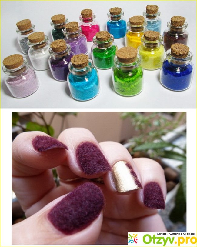 С таким вельветовым, бархатным, велюровым, кашемировым покрытии толщина ногтевой пластинки визуально кажется толще, с геля-лака толщина медленно осыпается, а с простого лака без воды продержится максимум три дня.