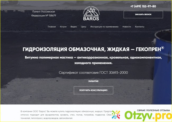 Купили квартиру на последнем этаже хрущевки. Главная проблема в том что крыша подтекала, по этому появилась надобность заказать гидроизоляцию кровли, и для этих целей появилась надобность выбора фирмы для таких целей. Среди предложении которые показались интересными оказалось как раз предложение от фирмы Барос.