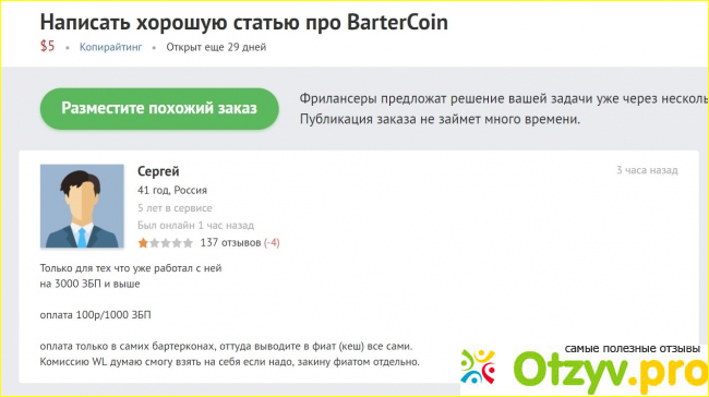 Пишу отзыв BarterCoin. Давно искал сайт для заработка, и в один момент, мой друг посоветовал мне проект под названием BarterCoin по началу не понимал, что да как. Но с этой проблемой я справился благодаря другу, и людям с BarterCoin, проект уже работает давно, зарегистрировался буквально пару дней назад не увидел ни одного минуса в этом проекте, и самое хорошее то, что за эти БР можно покушать в MacDonalds! И выводить эти деньги в рубли.
