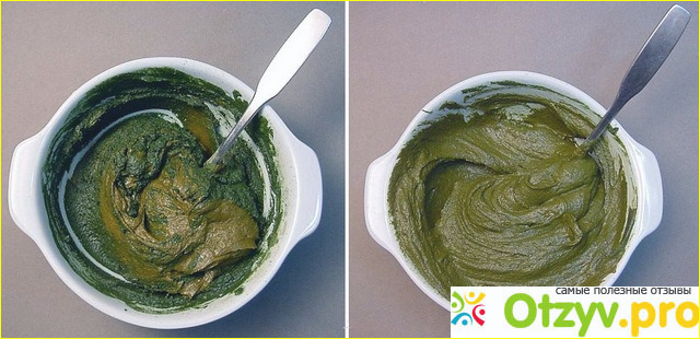 Смесь порошков заливаем горячей водой до образования кашица, консистенции как густая сметана.