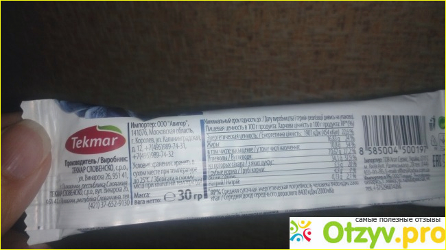 Одним из любимых является батончик-мюсли в йогурте от торговой марки Tekmar. Страна-производитель этих батончиков Словакия.