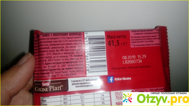 Эти батончики немного отличаются от обычного Kit Kat, и не только внешне. У этого батончика начинка более ароматная, в ней больше какао. Начинка нежная, не сухая. Вафельки лёгкие и приятно хрустят. Внутри вафельных прослоек немного, в основном начинка.