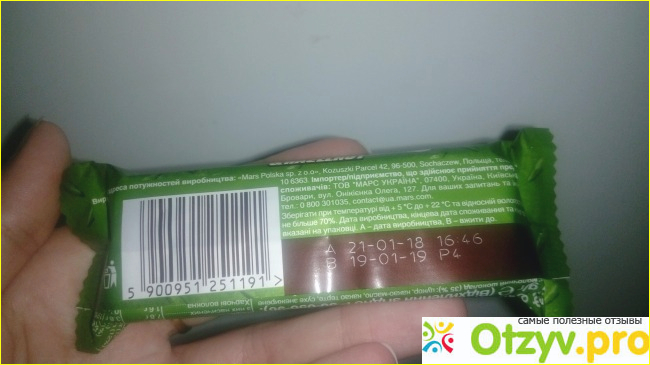 На упаковке на видном месте выбита дата производства и окончательная дата употребления шоколадки. Срок годности составляет год.