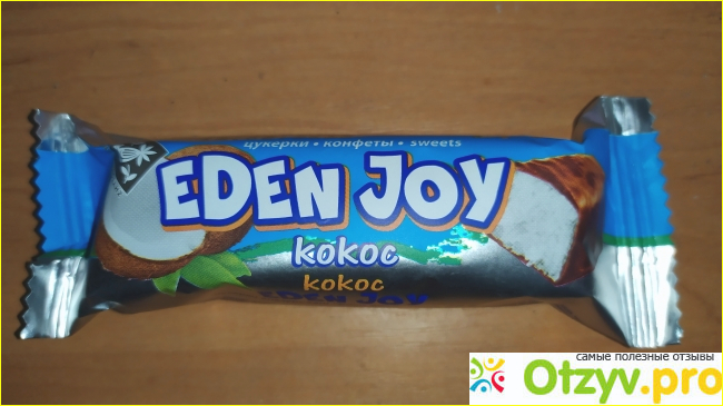 Кокос и сладости с его содержанием это моя слабость, не могу пройти мимо конфет и батончиков с кокосом. Я очень люблю батончик "Житомирские лакомства" Eden Joy. Купить такое лакомство можно практически в любом супермаркете, сладости от этого производителя распространенные в моем городе.