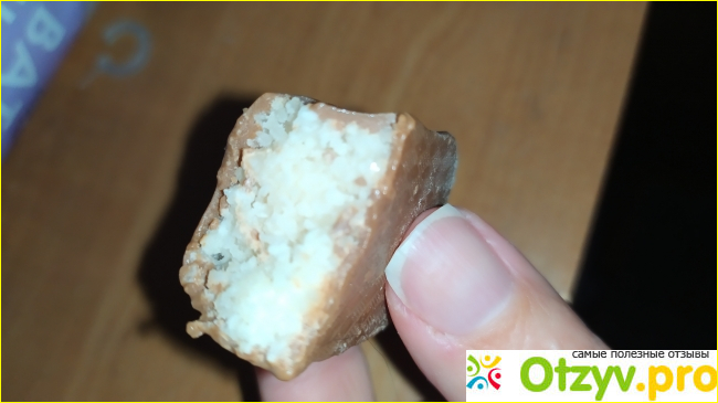 Начинка очень ароматная, нежная и не жёсткая. Батончик не чересчур сладкий, очень вкусный. Этот батончик по вкусу напоминает всем известный Bounty, только дешевле.
